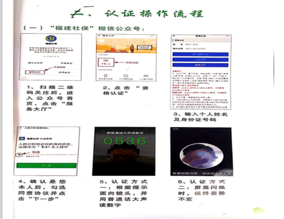 1.自助认证。关注微信公众号“福建社保”、“闽政通APP”、“中国领事APP”、等服务平台进行人脸识别认证。
