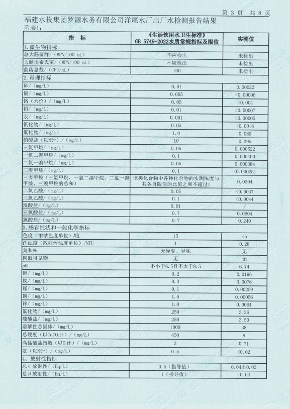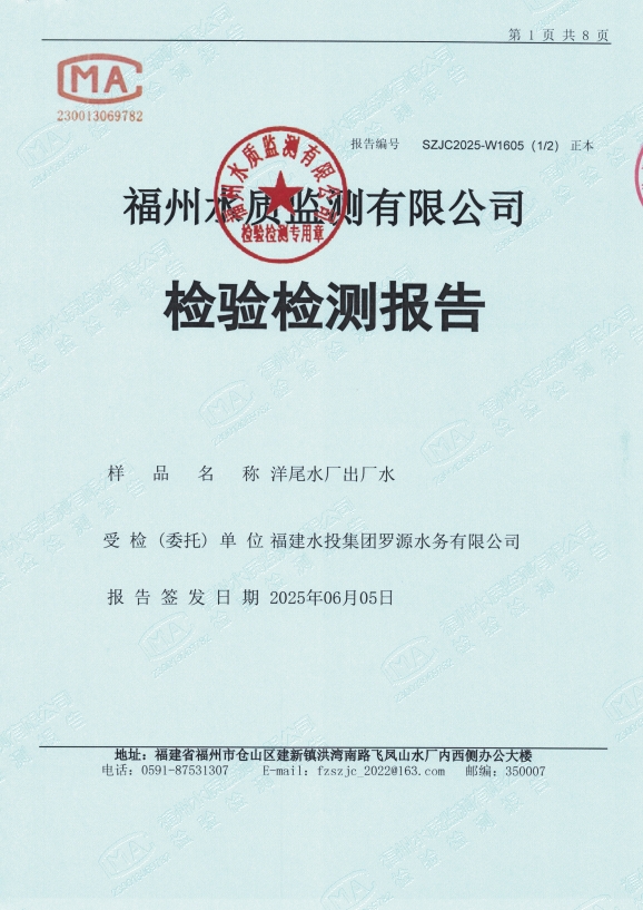 2025年5月洋尾水厂出厂水水质检测报告
