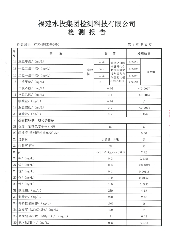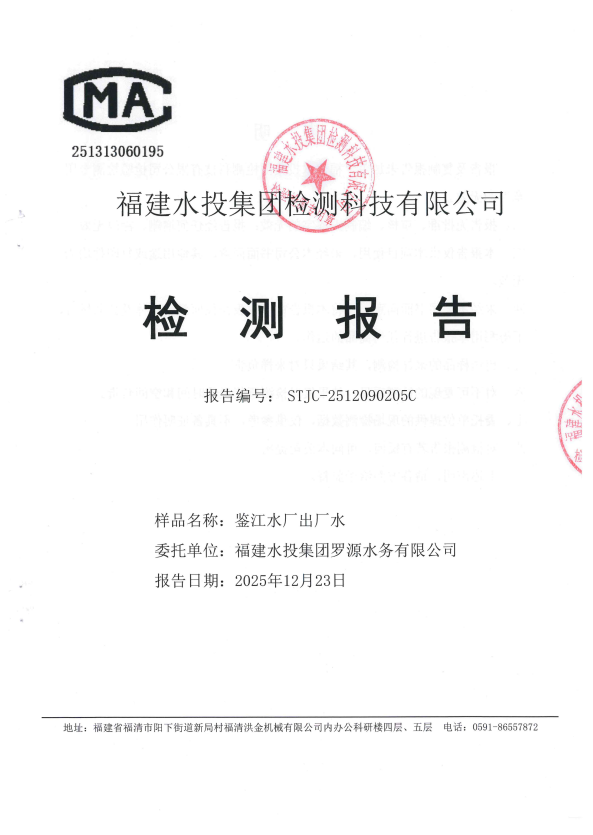2025年12月鉴江水厂出厂水水质检测报告
