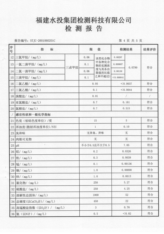 2026年1月滩内水厂出厂水水质检测报告