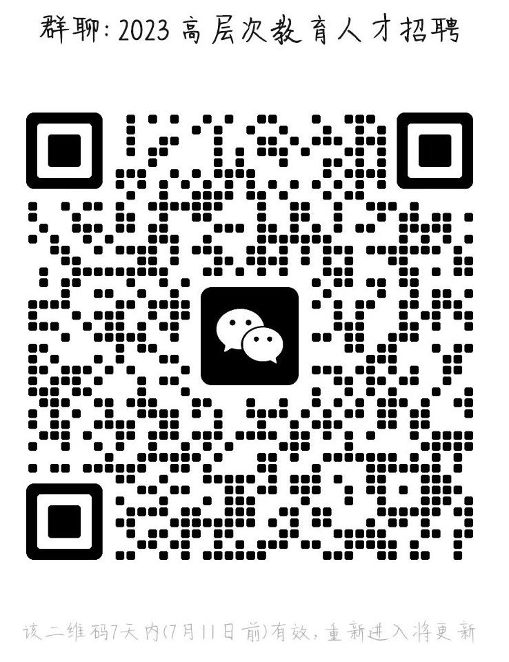 (三)为方便联络与通知,请考生扫描下方二维码加2023高层次教育人才招聘微信群。并在明了本政审通知后在微信群中私聊管理员“姓名+已明了政审通知”。
